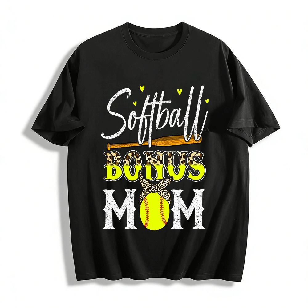 Softball Bonus Mom Leopard Print Softball Lover Game Day Shirt Pure cotton T-shirt