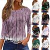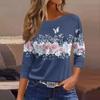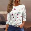 Women's Three-Quarter Sleeve Shirt, Round Neck, Loose Fit, Casual Shirt, Floral Print T-Shirt, Summer