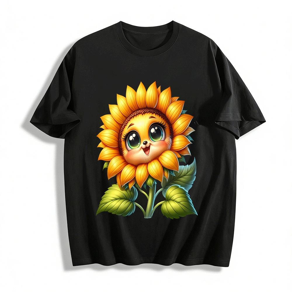Cute Sunflower Anthropomorphic Print Casual Daily Top Pure cotton T-shirt