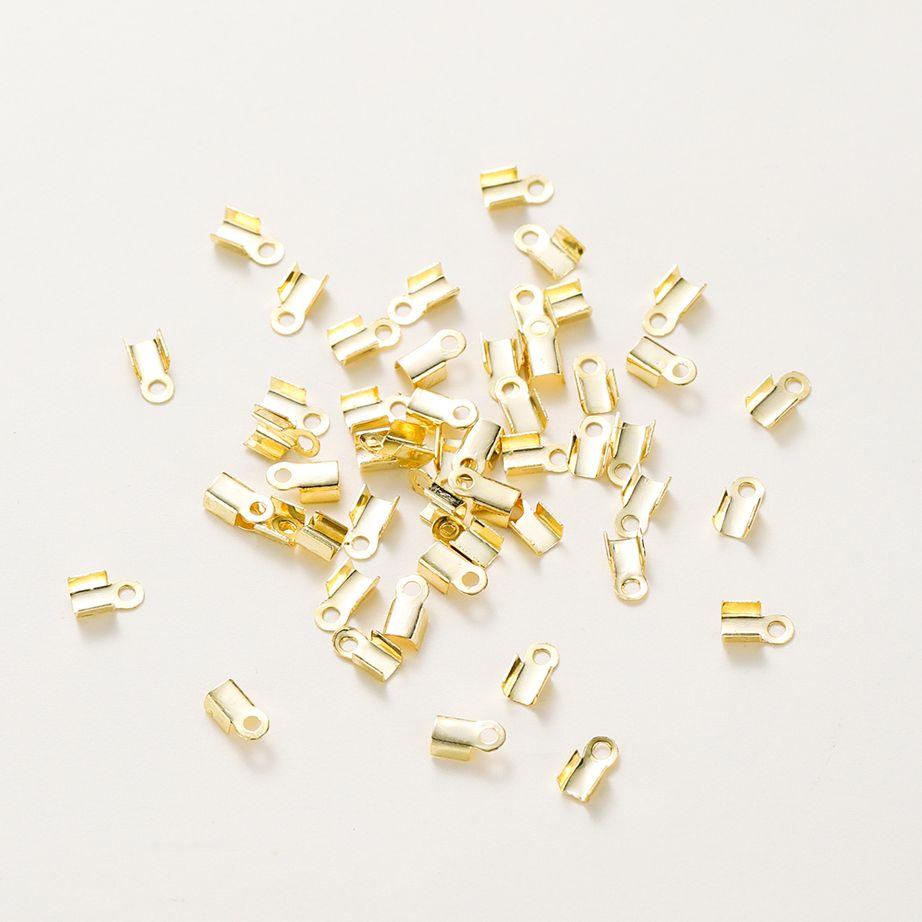 50pcs/lot 14K 18K Real Gold Leather Cord Crimping End Cap Clips Bracelet Fold Crimping Clasp Beads For Jewelry Handmade Findings