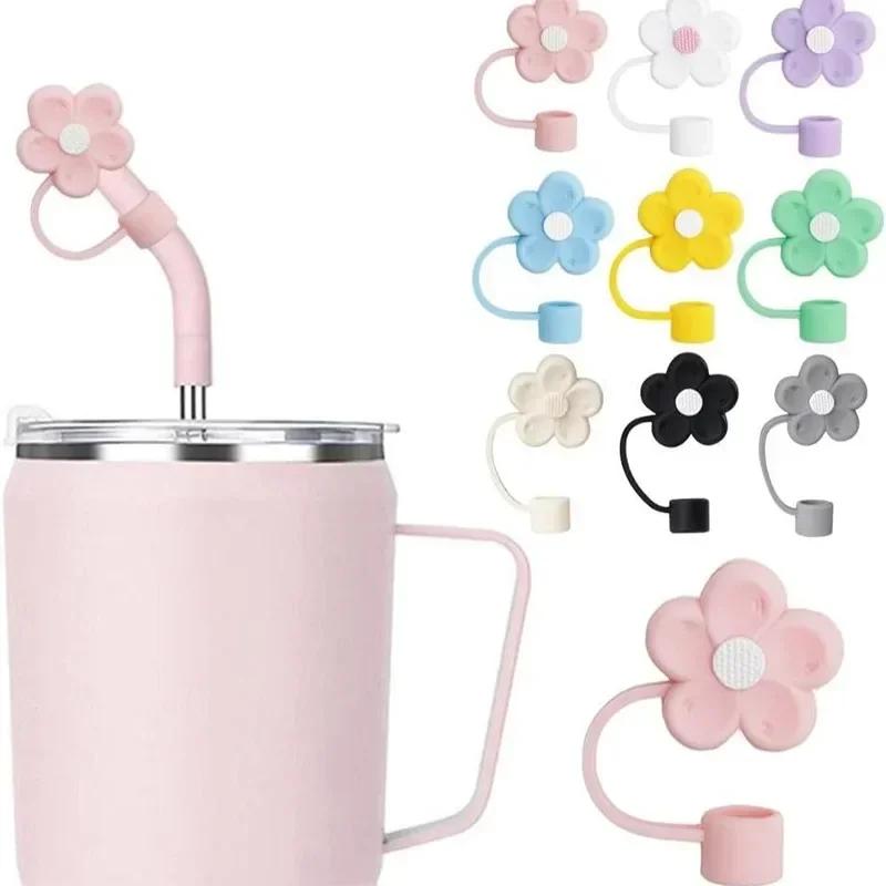 2026 New Flower Silicone Straw Covers for Stanley Cup 40oz 10mm Tumbler Cups Splash Proof Straw Toppers Kawaii