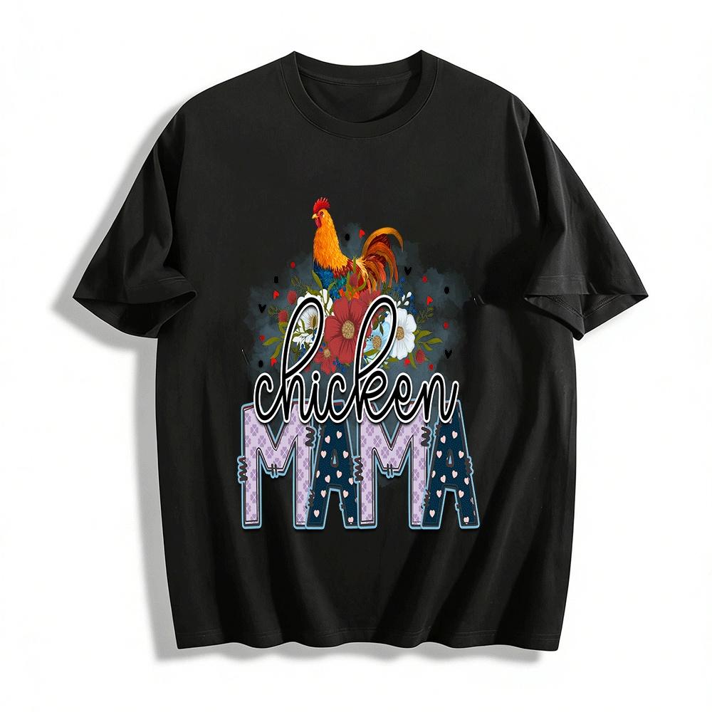 Cute Chicken Mama Rooster Floral Print Casual Top Pure cotton T-shirt