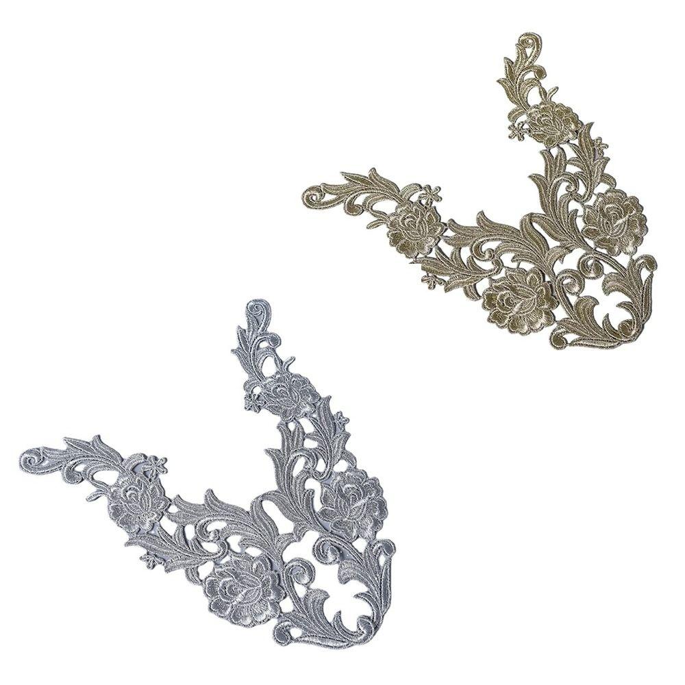 1Pair Fashion Polyester Lace Applique Gold Flower Embroidery Patch Lace Material Flower Patch Wedding Decoration
