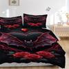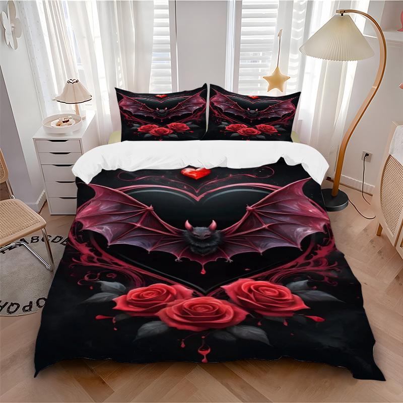 3pcs Bat Heart Roses Duvet Cover Set - Includes 1 Duvet Cover and 2 Pillowcases, No Quilt Core, All-Season Home Decor yy251111086