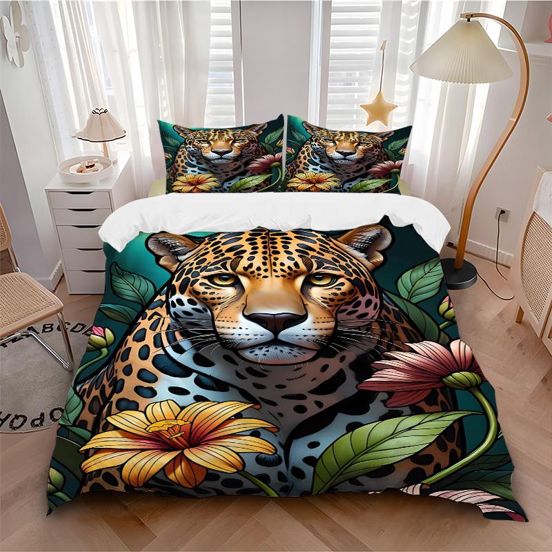 3pcs Leopard Print Duvet Cover Set -Includes 1 Duvet Cover and 2 Pillowcases, No Quilt Core, All-Season Home Decor yy251111139