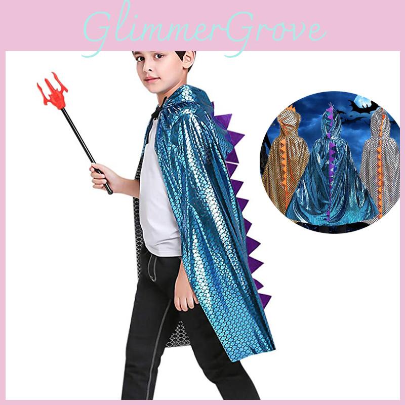 Halloween Dinosaur Costume Cape For Kids Dragon Dress Up Hooded Cloak Spiky Dinosaur Scales Design