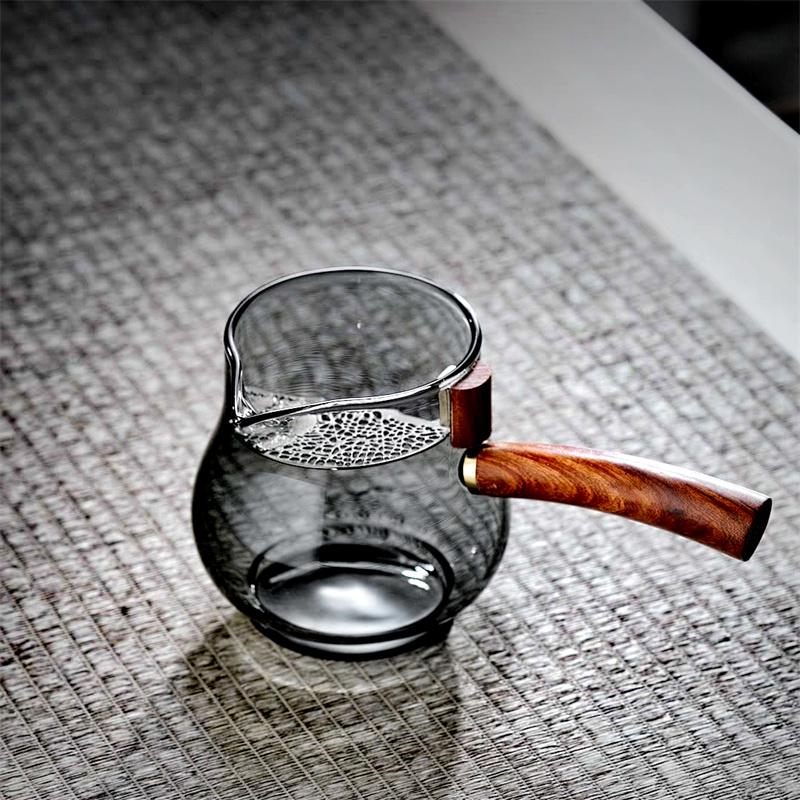 Crank Side Wooden Handle Glass Tea Dispenser Fair Cup With Removable Filter Heat Resistant Chahai Kungfu Tea Set Tea Maker