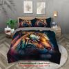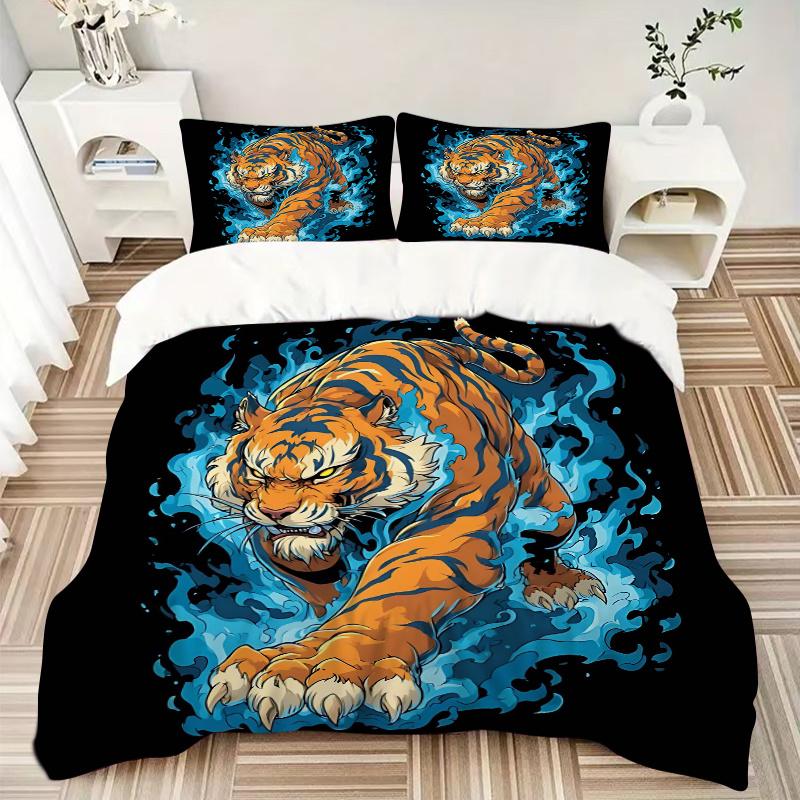 3pcs Blue Flame Tiger Quilt Set - Soft and Comfortable Bedroom, Guest Room and Dorm Decor Bedding Set 1 Quilt Cover + 2 Pillowcases.W012