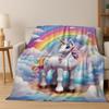 Kreslený duhový jednorožec Elfové Dívka Dárek Flanelová deka, Útulná měkká přehozová deka pro domov Ložnici Postel Pohovku Piknikový potah Děti