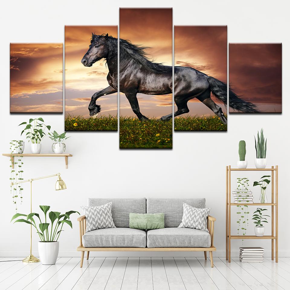 Canvas Painting A horse running sunset 5 Pieces Wall Art Painting Modular Wallpapers Poster Print for living room Home Decor