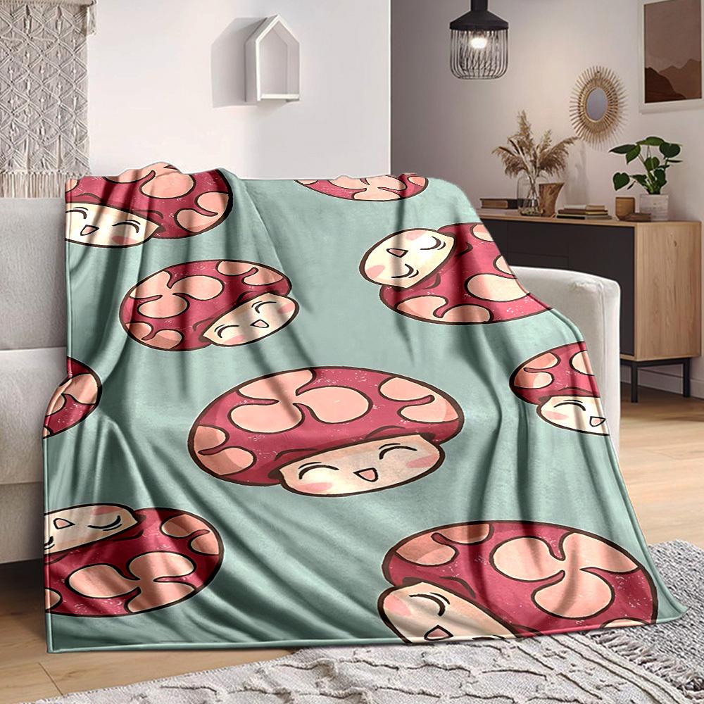 1pc Mushroom Blanket, Lightweight Flannel Throw Blanket For Sofa, Bed, Travel096