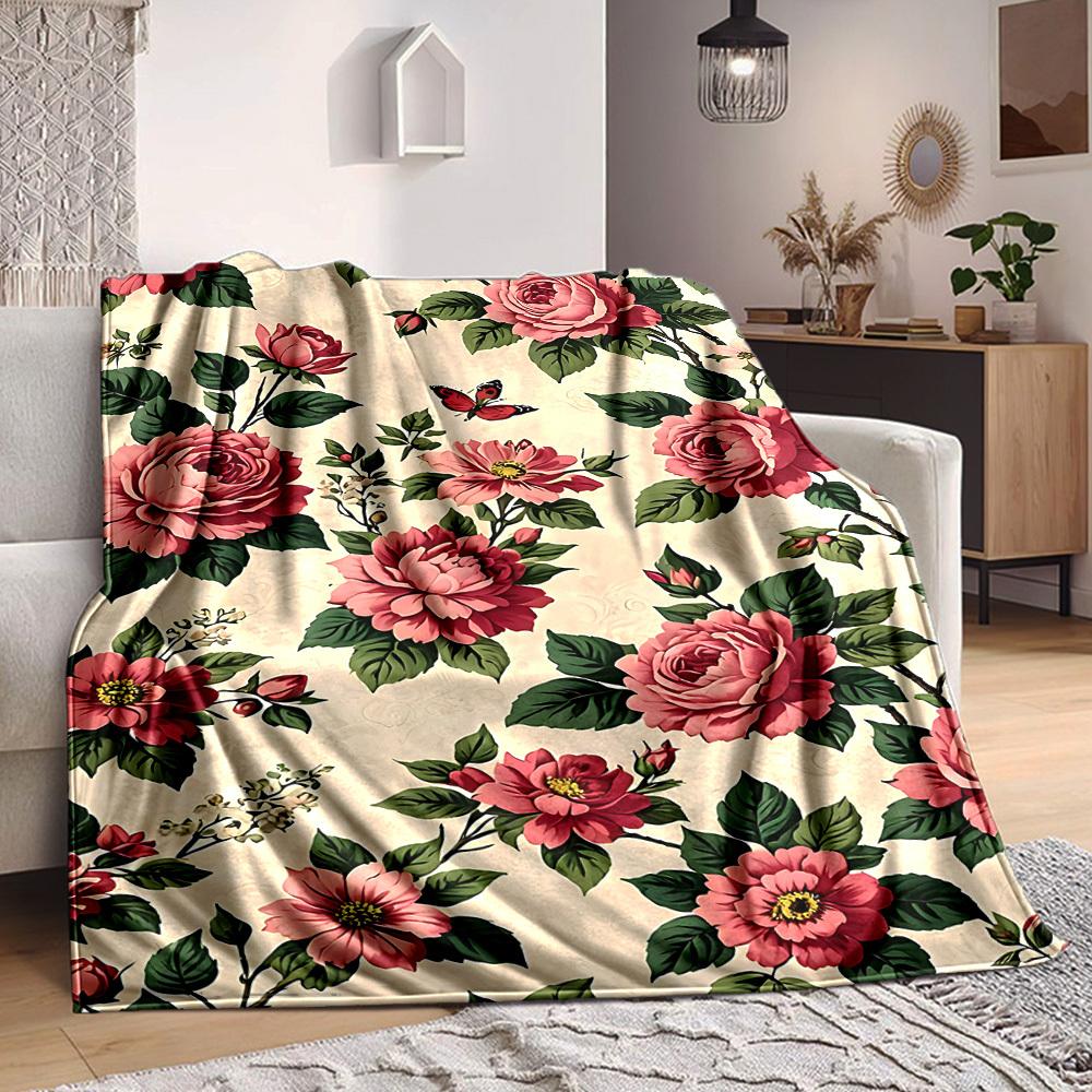 1pc Floral Butterfly Lightweight Flannel Blanket, Comfortable and Warm Blanket, for Office and Camping Sofa Bed, Livingroom199