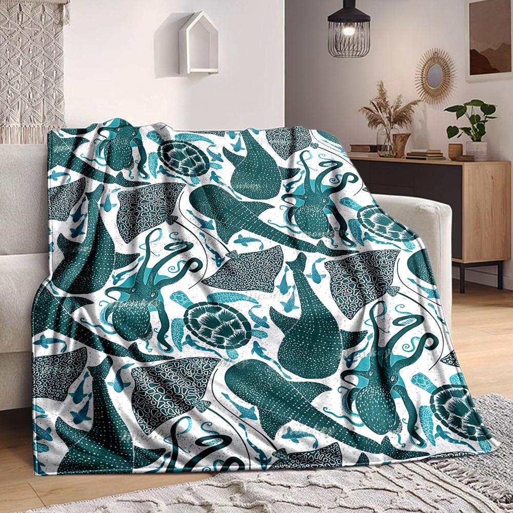 1pc Ocean Creatures Lightweight Flannel Blanket, Comfortable and Warm Blanket, for Office and Camping Sofa Bed, Livingroom186