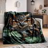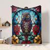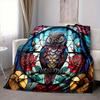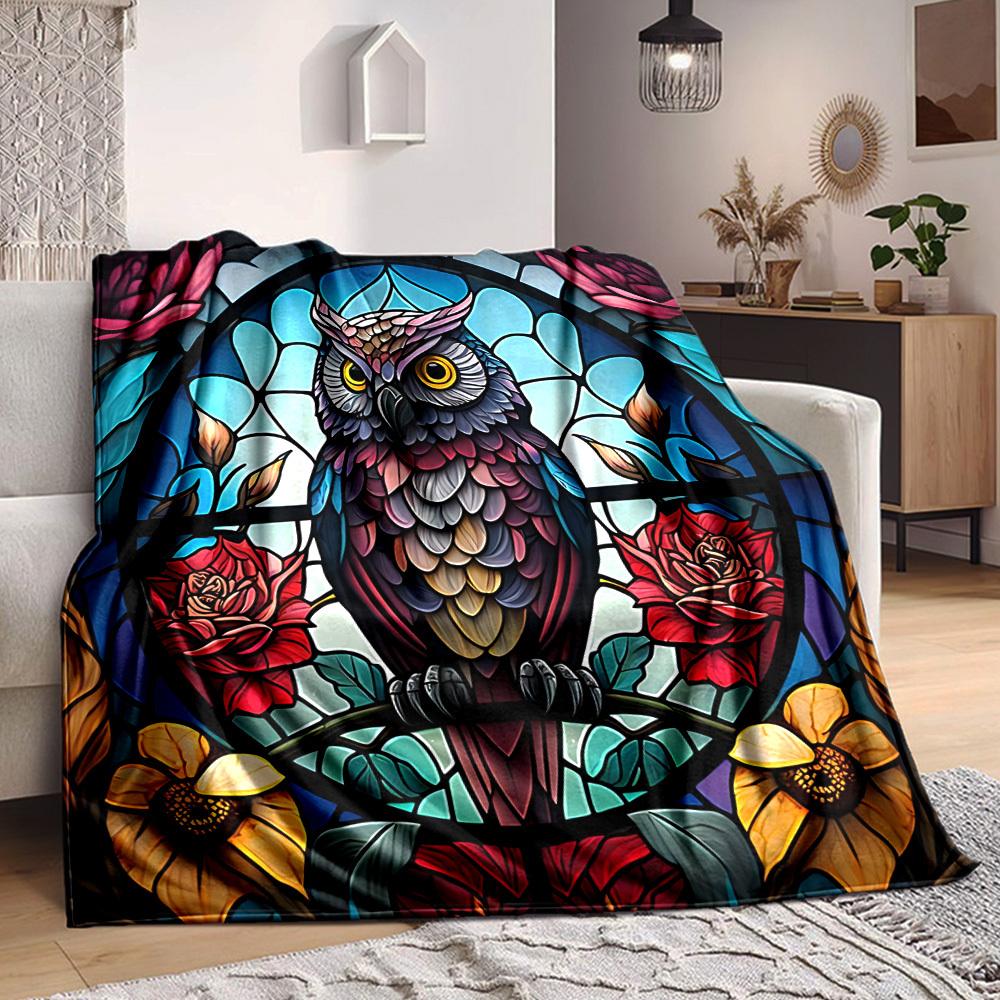 1pc Stained Glass Owl Lightweight Flannel Blanket, Comfortable and Warm Blanket, for Office and Camping Sofa Bed, Livingroom058