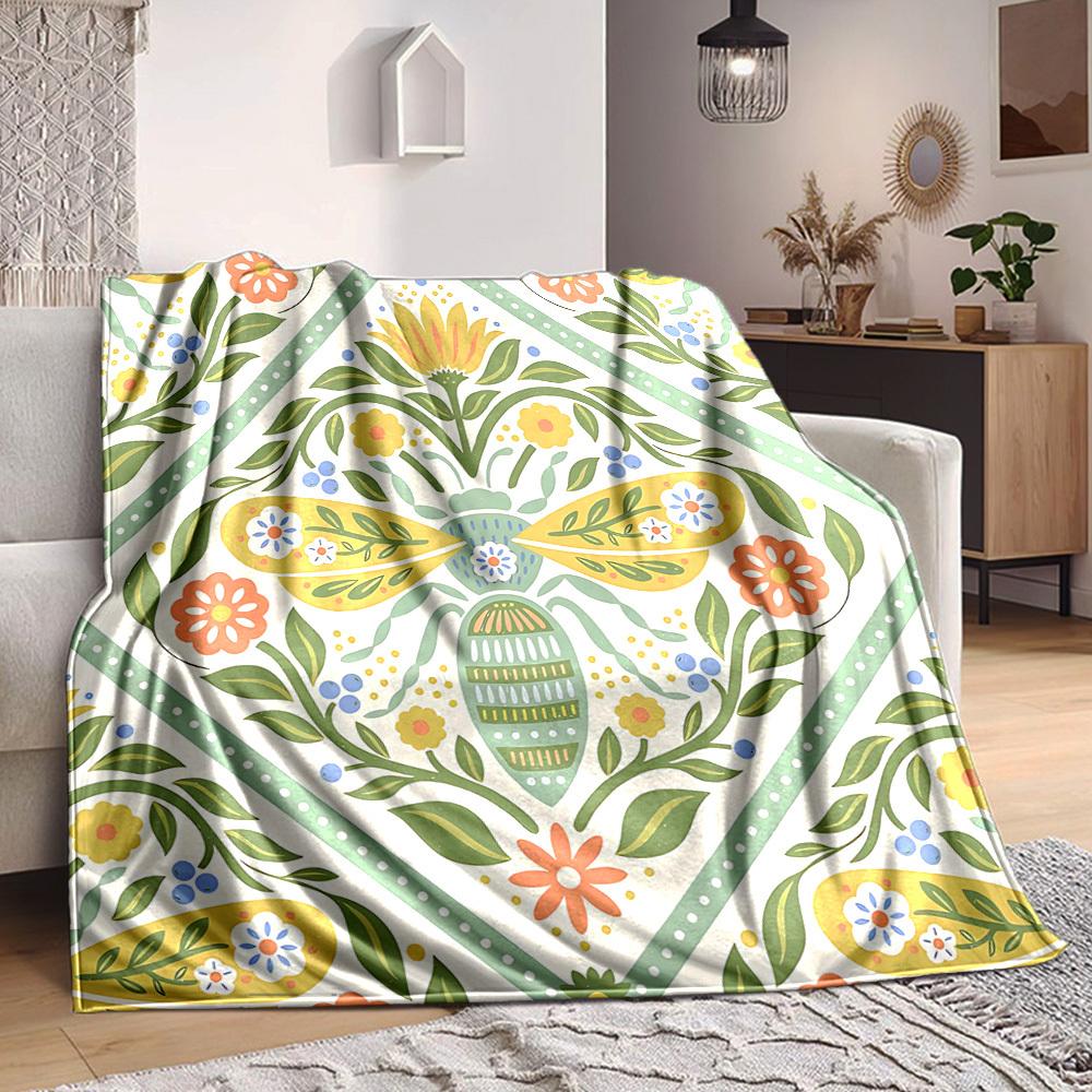 1pc Floral Bee Lightweight Flannel Blanket, Comfortable and Warm Blanket, for Office and Camping Sofa Bed139
