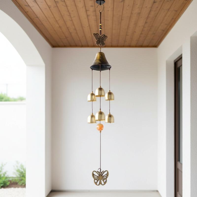 Vintage Butterfly Wind Chime Metal 6 Bells Retro Design for Home Outdoor Hanging Decor