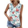 Women's Print Tank Top Button-down V-neck T-shirt Sleeveless Loose Fashion Top
