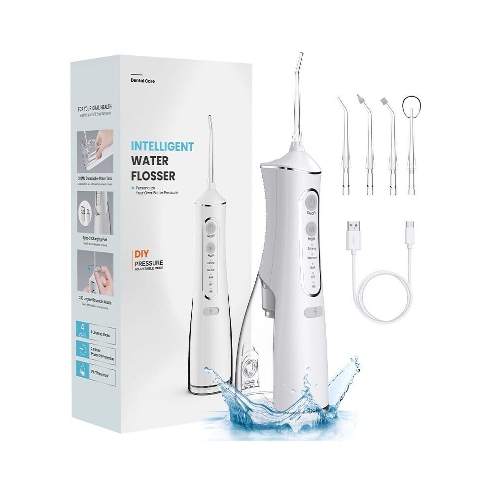 Cordless Water Flosser Dental Oral Irrigator 5 Jet Tips 300ml 4 Mode DIY Intelligent Waterproof IPX7 White