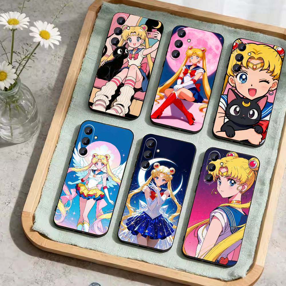Cartoon D-Sailor M-Moons Phone Case For Samsung Galaxy A73,A21s,A22,A31,A52,A53,A71,A41Soft Black Shell