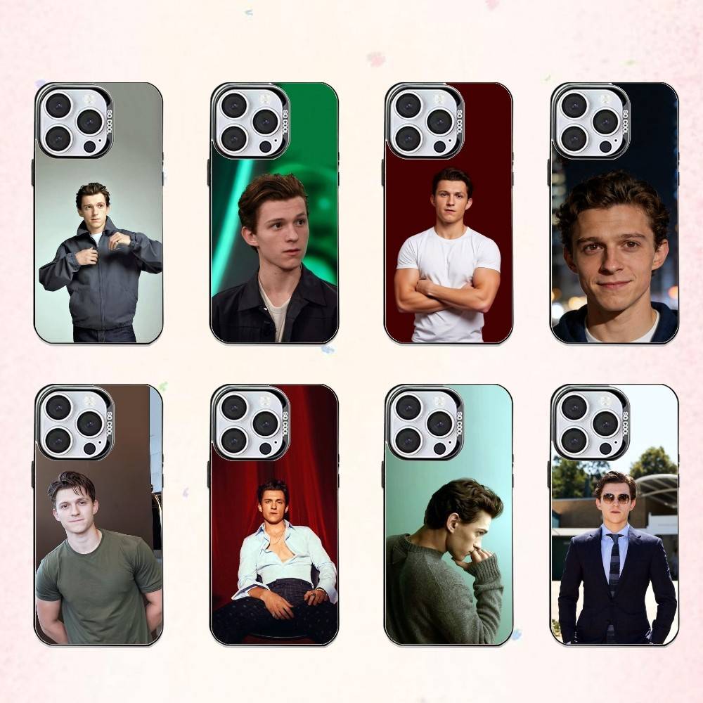Handsome British Actor Tom Holland Phone Case For iPhone17,16,15,14,13,12,11 Plus,Pro Max Colored Silver Plated Inside Cover