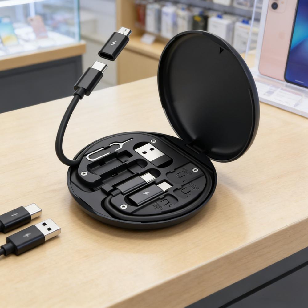 Portable Multi-functional Data Cable Storage Box, 60W Fast Charging Mobile Phone Holder, Charging Cable Set, Multi Head Adapter