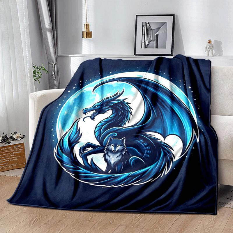 1pc Dragon Wolf Printing Lightweight Flannel Blanket, Comfortable and Warm Blanket, for Camping Sofa Bed and Couch Office, in All Seasons