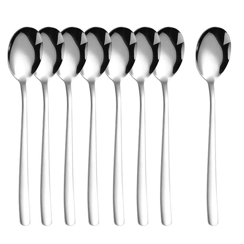8 Pcs Spoon Set 304 Stainless Steel Cutlery Set Korean Cake Spoon for Hotel Home Bar Cafe and Office Long Handle Coffee Spoon