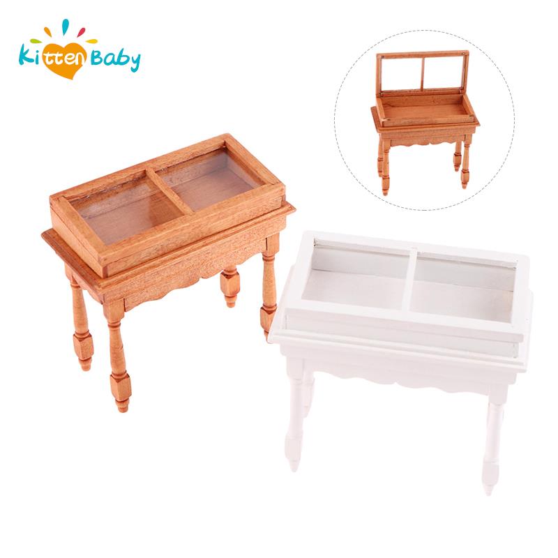 1:12 Dollhouse Miniature Wood Counter Clamshell Jewelry Display Cabinet Showcase Storage Cabinet Furniture Doll House Decor