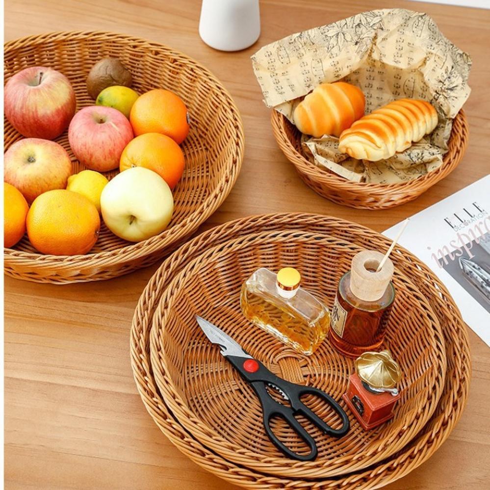 Handmade Woven Rattan Basket Creative Rattan Woven Fruit Basket Supermarket Display Basket Fruit Vegetable Round Storage Basket