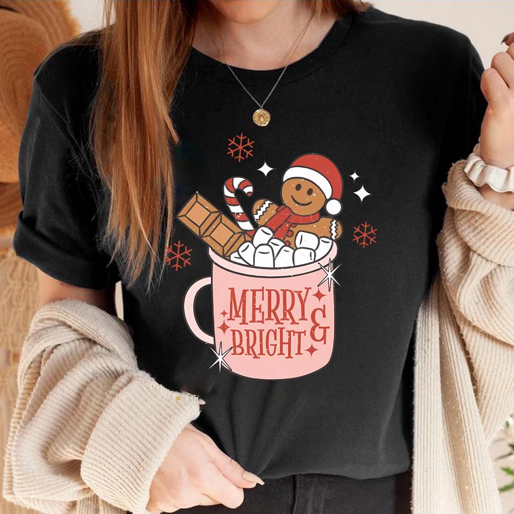 Gingerbread Retro Merry T Shirt Cute Xmas Tshirt Christmas Graphic T Shirts Merry Christmas Tee Womens Holiday Tops