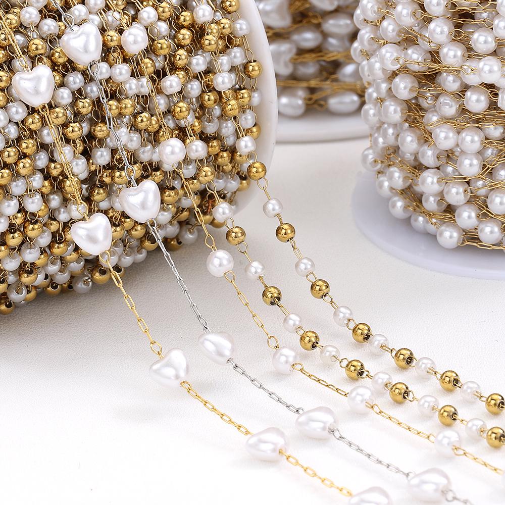 2meters 1meter Stainless Steel Love Heart ABS Pearl Beads Chains for Necklace Bracelet Chain for Jewelry Making DIY Wholesale