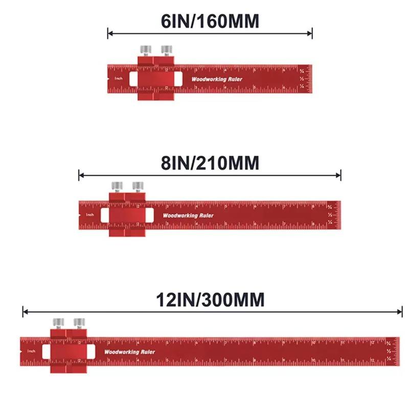 Woodworking Ruler Set Portable Scribing Positioner Ruler Aluminum Alloy Positioning Marking Rulers Carpenter Measuring Tools