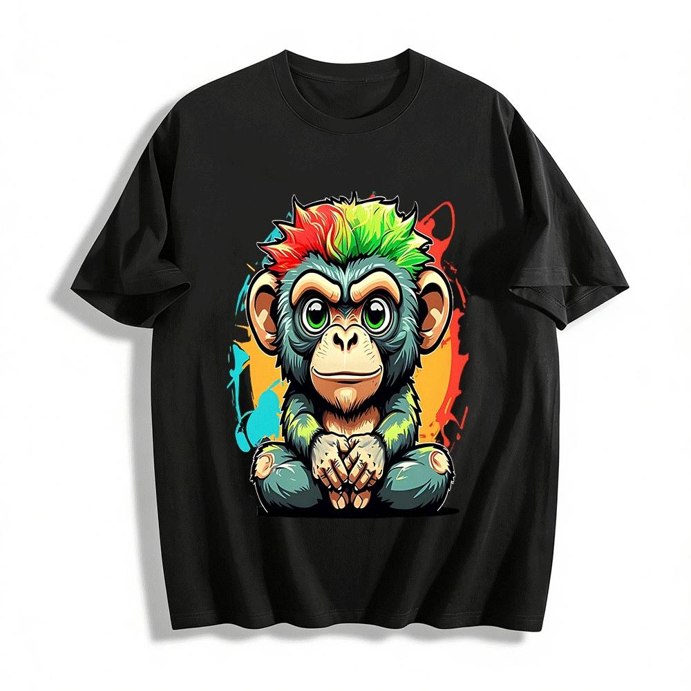 Trendy Color Block Punk Style Cute Monkey Print Casual Unisex T-Shirt Pure cotton T-shirt