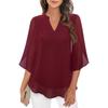 Letní ležérní dámská šifonová košile s volným výstřihem do V s okvětním rukávem