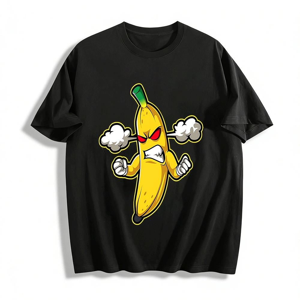 Angry Fuming Banana Print Fun Casual Short Sleeve T-Shirt Pure cotton T-shirt