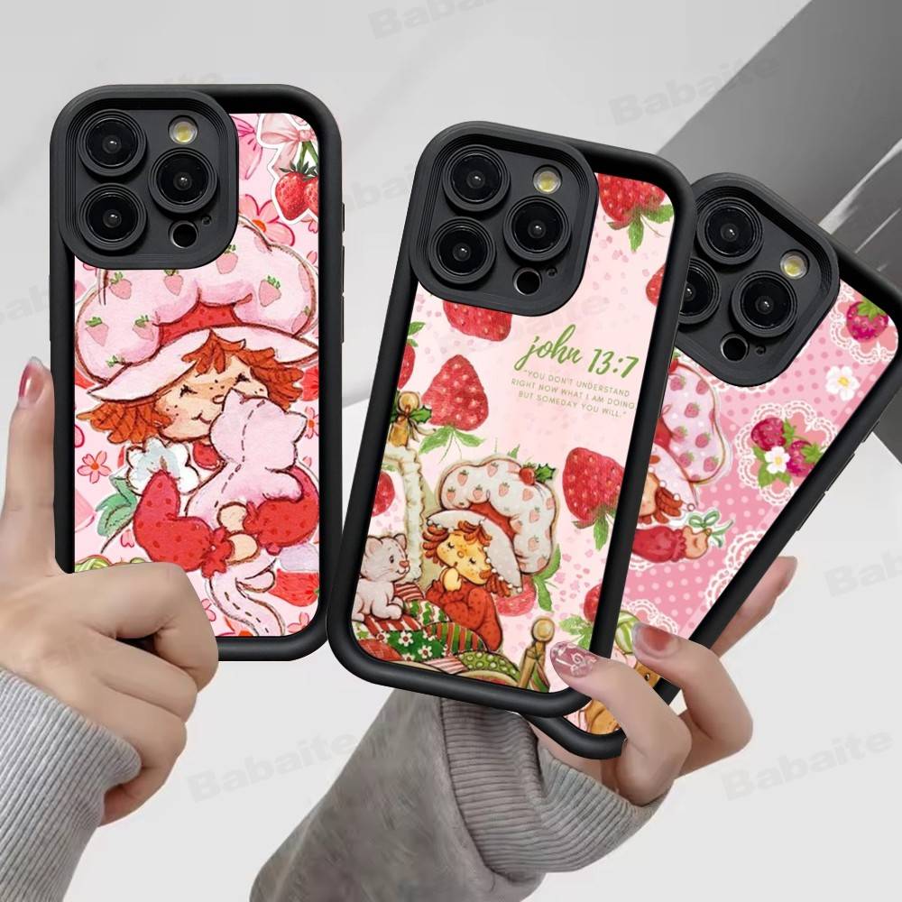 Animated S-Strawberry S-Shortcake Silicone Soft Phone Case For IPhone 17 16 14 13 12 11 15 Pro Max Plus Air Cover