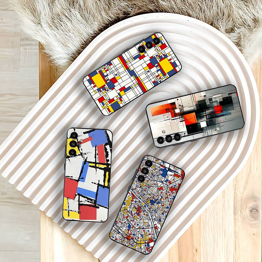 Abstract Piet Mondrian Phone Case For Samsung Galaxy A73,31,32,72,41,53,52,71,22,5G,Note,J7,8,9 Soft Black Cover