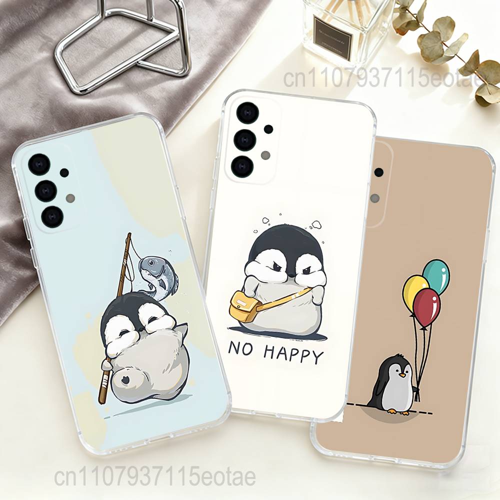 Cartoon Penguin Kawaii Cute Transparent TPU Case for Samsung S21,S24,S30,S23,S25,S22,S20,S10,5G,FE,PIus,Lite,Ultra