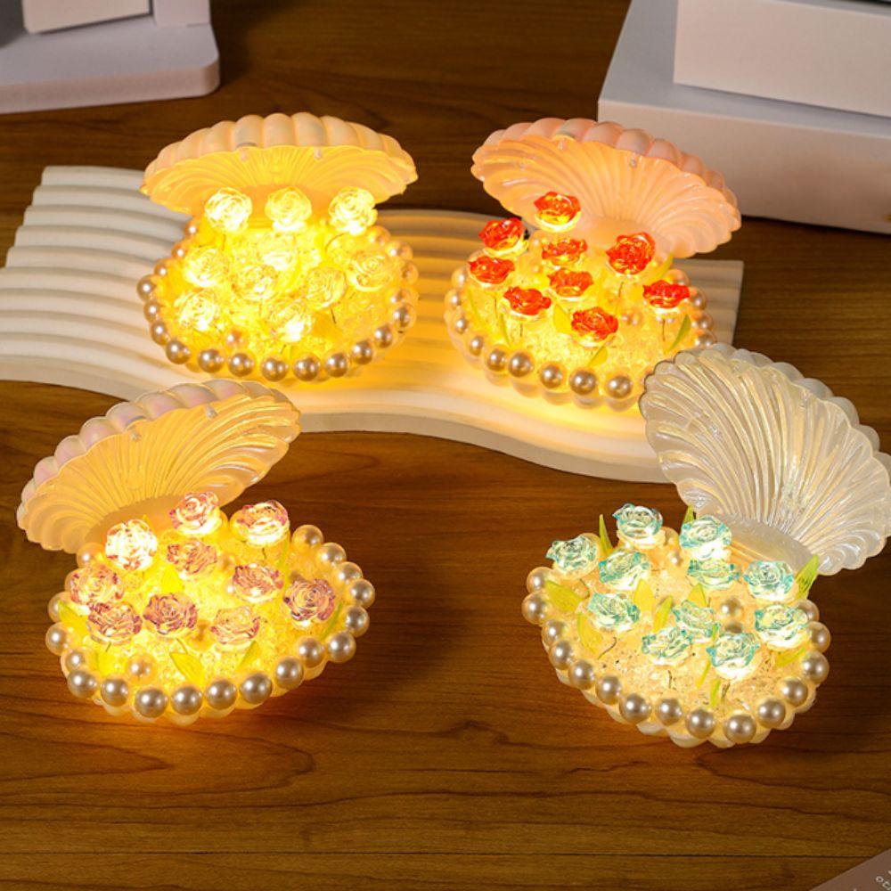 Warm Light Shell Night Light Handmade Shell Shaped Rose Night Light DIY Tulip Design Shell Table Lamp Birthday Gift