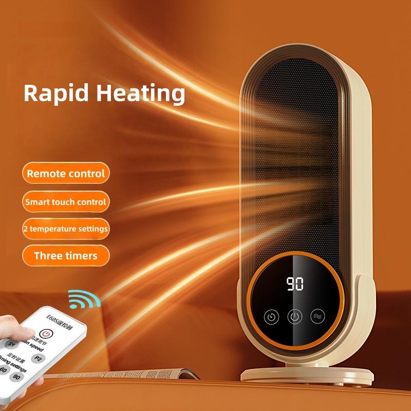 1200 W PTC Ceramic Fan Heater with 2 Temperature Settings & Timer, Anti-Overheating and Anti-Tilt Protection for Office, Bedroom
