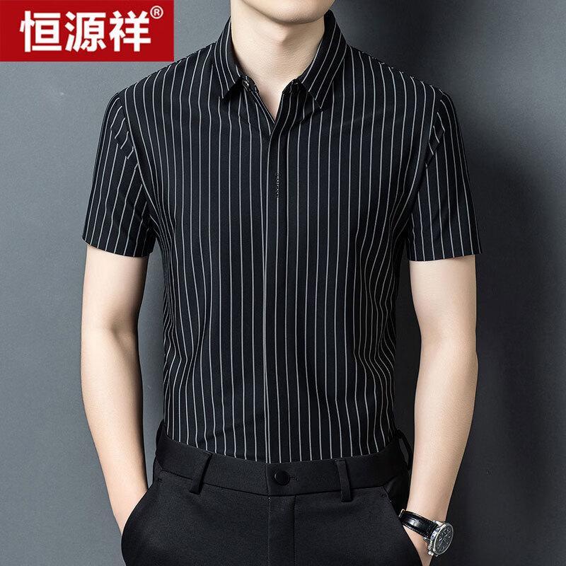 Hengyuanxiang Men's Summer Short Sleeve Striped Business Shirt