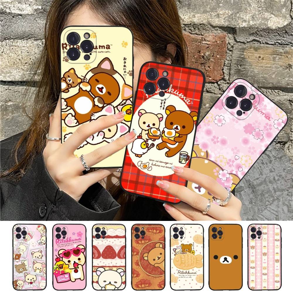 Popular Cute R-rilakkuma Bear Phone Case For IPhone 16 Pro Max 15 17 Plus 14 13 12 Mini 11 Black Cover