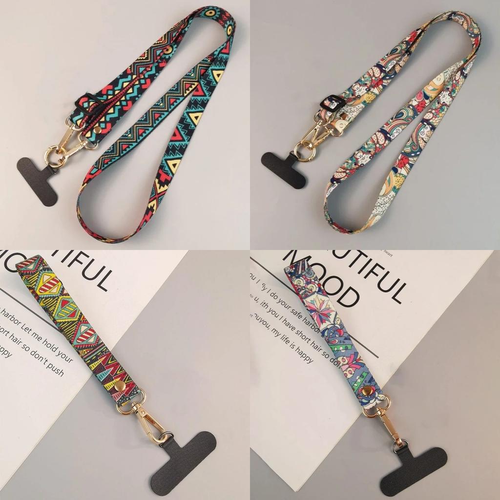 Universal Phone Clip Antilost Retro Pattern Strap Crossbody Long Strap Adjustment Length Hanging Neck Strap Mobile Phone Lanyard