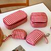 Multifunctional Plaid Makeup Bag Cotton Toiletry Organizer Bag Portable Travel Storage Bag Travel