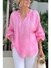 Women’s Polo-neck V-neck Plain Cotton-linen Long-sleeved Casual Top