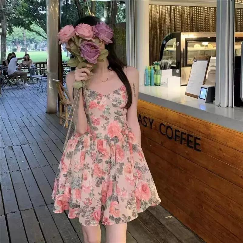 High-waisted Flattering Floral Print Strapless Dress; Ethereal A-line Mini Skirt for Spring and Summer