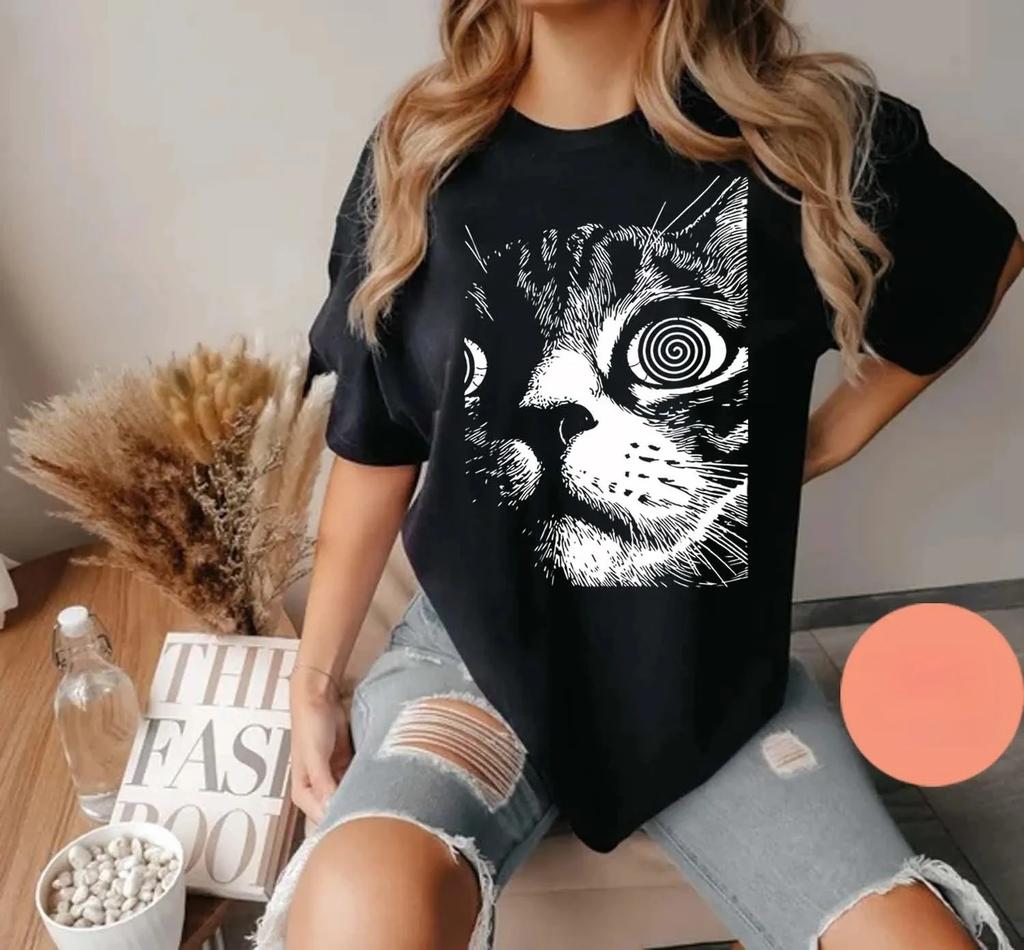 2026 Summer Women Unisex Vintage Psychedelic Cat TShirt Cotton and Breathable Short Sleeve Streetwear Oversized Loose Casual