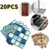 20pcs/set New Self Adhesive Wall Sticker Waterproof Oil Resistant Art Decals Flat 3D Mosaic Tile Wallpaper For Living Room