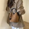 Tragetaschen Cord Leder Patchwork Umhängetasche Modetrend Damen Bucket Bag Braun Große Kapazität Damen Büro Handtasche