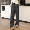 Women's Plus Size Vintage Plaid Pants Casual Pants Autumn and Winter Loose Wide Leg Pants